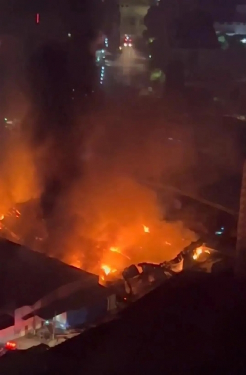 火災(zāi)主要燃燒物汽車配件等,經(jīng)過緊張?zhí)幹?,火勢被成功控制?strong>無人員傷亡